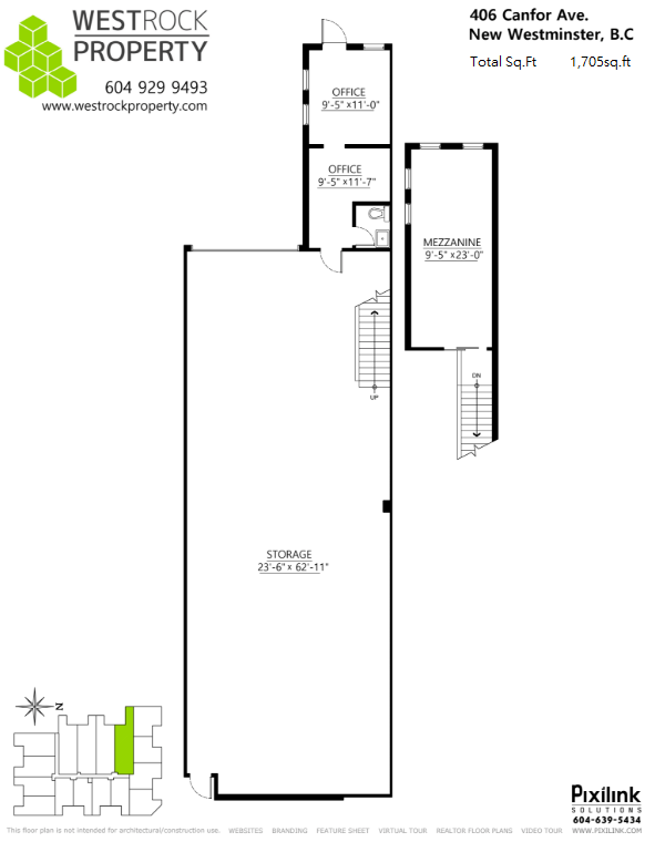 Looking for a functional and well-located warehouse space in New Westminster’s industrial hub? This 1,705 sq.ft unit at 406 Canfor Avenue offers a versatile layout that includes a spacious warehouse area, two back offices, a washroom, and an upstairs mezzanine — perfect for storage, light industrial, or distribution use. The unit features a 20-foot ceiling height, 3-phase electrical power, and is zoned M2 (Heavy Industrial). It also includes drive-in loading access, parking directly in front of the unit, and a sprinkler system (not monitored).